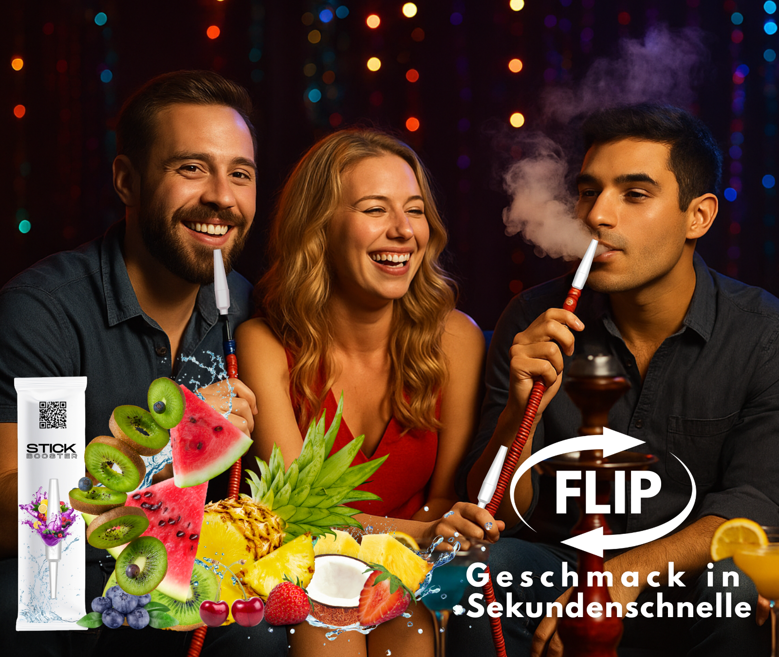Genieße deine Shisha mit vielen Geschmäckern zusammen mit deinen Freunden. Jeder mit seinem Stick Booster LieblingsGeschmack in der Hand. Unser Motto, eine Shisha, viele Genüsse!