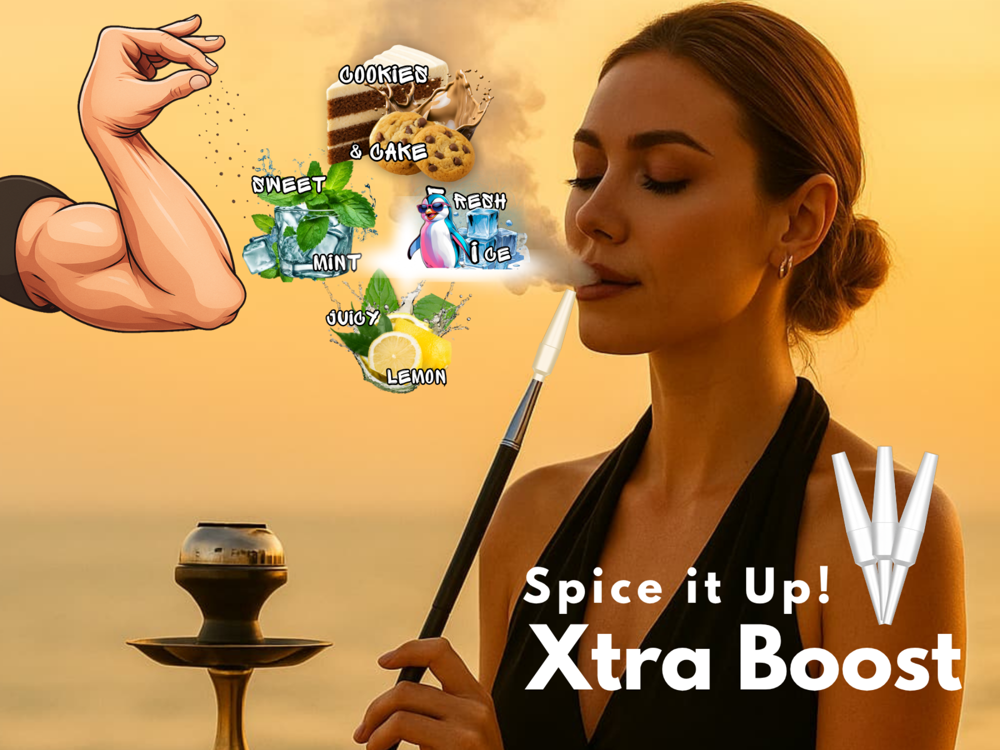 Würze deinen Lieblingsshisha Geschmack mit unserem StickBooster Xtra Boost nach. Ein Spritzer Zitrone zu deiner Blaubeere, backe deinen eigenen Kuchen mit Cookies & Cake und Deiner Apfel Shisha, genieße deinen Melonengeschmack mit kühler Ice Frische oder hol dir einen zusätzlichen Mint Kick. Deiner Kreativität sind keine Grenzen gesetzt