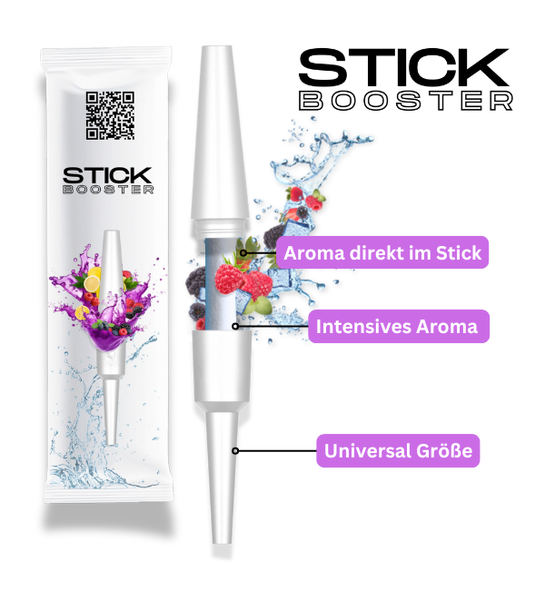 Der Stick Booster lässt sich einfach anbringen und verspricht bis zu 8 Stunden intensiven Rauchgenuss mit einer Vielfalt von bis zu 1000 Kombinationsmöglichkeiten.